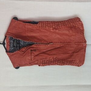 Montana Co Burnt Orange Faux Leather Smocked Zip Vest Size Medium