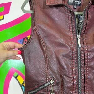 Montana Co, Deep Red Faux Leather Moto Vest. Size Medium. Excellent condition!
