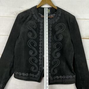 Montana Co Leather Jacket Womens L Black Embroidered Button Up Lined Cowgirl