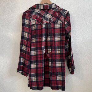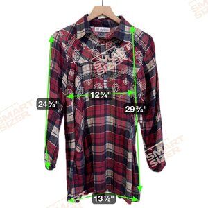 Montana Co. Womens Embroidered Plaid Tunic Shirt Medium Red/Black Cotton Blend