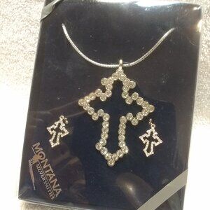 Up for sale is a Montana Silversmiths Cross Silhouette Crystal Filled Jewelry Set W/Box Excellent