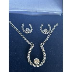 Montana Silversmiths Horse Shoe & Crystal Earrings And Necklace Jewelry Set