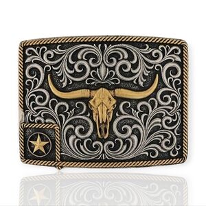 Longhorn Attitude Buckle surrounding the gold tone steer