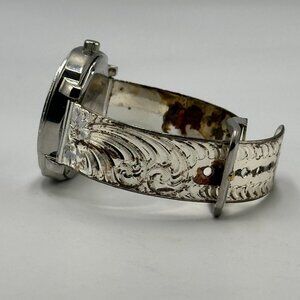 Montana Time Watch Women Silver Tone Mother of Pearl Dial Scroll Design Band