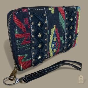 Montana West Aztec Woven Wallet Wristlet Studded Tapestry Western Boho Zip