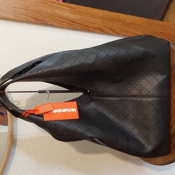 Montana West Black Faux Leather Perforated Large Sling Bag W/ POUCH New!