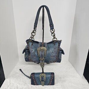 Montana West Blue Western Shoulder Bag w/ Wallet Chain Rodeo Cowgirl Conceal