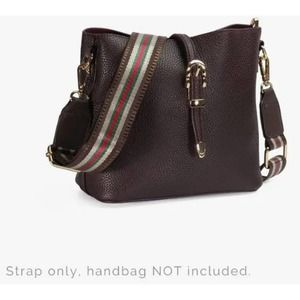 This fun guitar inspired strap elevates your bags with a touch of comfort and a fresh versatile attitude. Suitable for bags of all sizes, from purses and totes, to accessory wallets and more! Stripe design Gold tone hardware. Soft nylon webbing in 1.5 inch for comfortable wearing Adjustable from shoulder to crossbody positions Adjustable strap from 30"-54" Handbag not included Mix and Match these purse straps with our Crossbody Bag