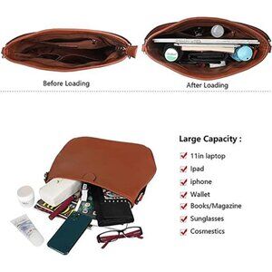 *STRUCTURE: The bag has a well-structured interior with one main zipper compartment, one inner zipper pocket, two inner pockets, and a back pocket. It can securely hold your 11" iPad, 11" notebook, as well as important items like credit cards, licenses, makeup, phone, or keys.