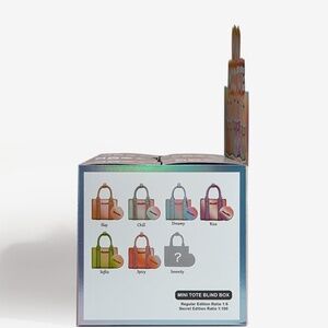 The blind box contains a random figure from a specific series. Each blind box only contains one mini tote.