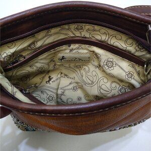 Montana West PU Leather Crossbody Bag Adjustable Stud Rhinestone Embroidered VTG