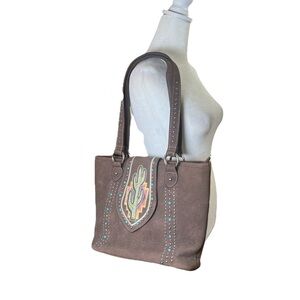 Montana West Sassy Cactus Concealed Carry Handbag & Wallet Sueded Brown Western