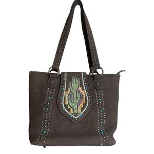 Montana West ladies shoulder bag or tote purse designed for concealed carry. Includes matching wallet with bling cactus design.