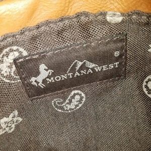 Montana West "Spiritual Collection" Handbag in good condition. Brown & black PU leather w/a rhinestone gem cross on the front. Metal studs on the sides & the strap just add to how adorable this purse is. This has a lot of compartments on the inside w/more on the outside.