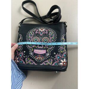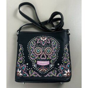 Montana West Sugar Skull Collection Black Conceal Carry Crossbody Embroidered