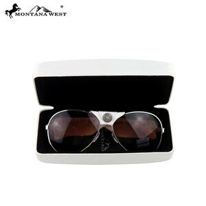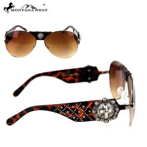 Montana West Sunglasses - Montana West Sunglasses Metal Cross Rhinestone Bling Aviator SGS-3704 LP - Brown UV400 White Case. Comes with Montana West Sunglasses Hard Cover Sunglasses Case as photographed.