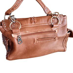Montana West Western Style Brown Faux Leather Handbag Studded Cross Buckle