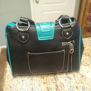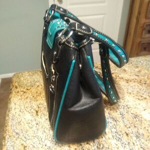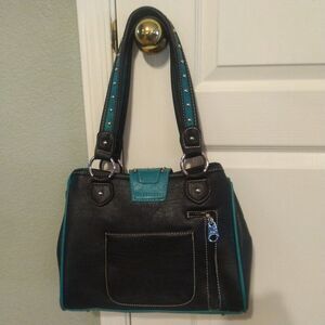 Montana West Womens Blue Conceal Carry Handbag Purse Rhinestone Buckle Studs EUC