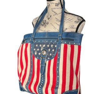 Montana west American West bag, Large roomy and always a show stopper! 17" x 15" . light weight canvas like twill, leather, Tote. # 1044
