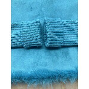 This jacket features a bright turquoise blue faux fur collar, trim, and lining, with a soft faux suede exterior. The ribbed knit sleeves add a comfortable stretch fit, while the toggle button closure provides a retro boho vibe. Perfect for festivals, Western wear, après-ski, or anyone who loves bold statement outerwear.
