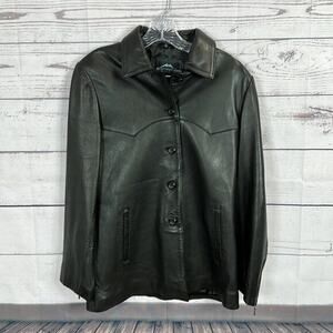 Montanaco Womens Leather Jacket size Medium Black Pockets Button close