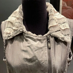 Montanaco silver/gray ombré toned offset zipper font faux fur lined vest. Small