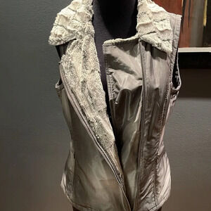 Montanaco silver/gray ombré toned offset zipper font faux fur lined vest. Lower front in seam hidden zipper pockets. Small. Super soft lining. Excellent condition. Nonsmoking home.