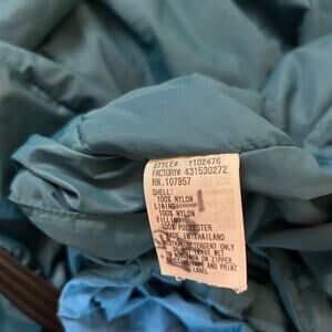 This jacket has been well loved! Both front pockets zip up still, but one side is missing the zipper pull. The elastic on the jacket inside has seen some better days. This jacket is great if you need a backup for during the winter!