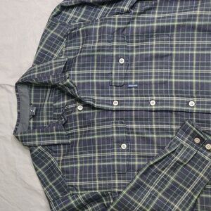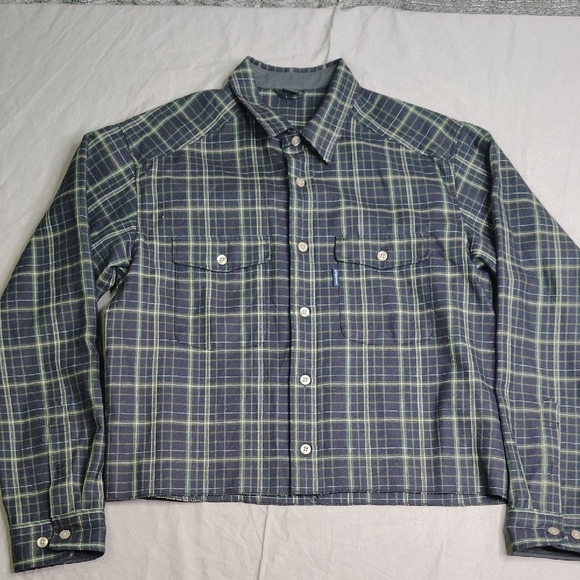 Montbell Plaid Button Up Shirt Cropped Women's Green Blue Tartan Plaid