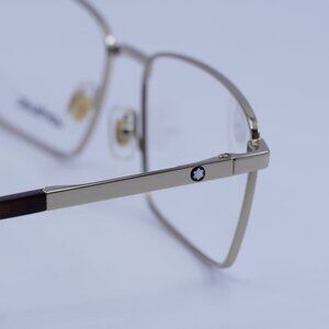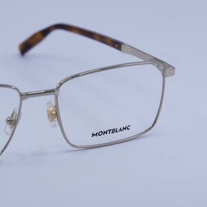 Authentic Montblanc MB0022O 003 eyeglasses in gold with havana at the temples.