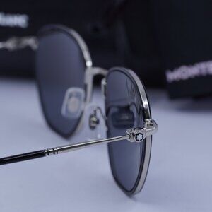 Montblanc MB0160S 001 Square Sunglasses - Silver/Black/Grey