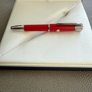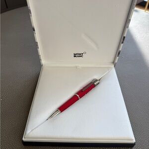Stylish Montblanc pen with a striking red body and silver accents. Ideal for sophisticated writing.