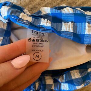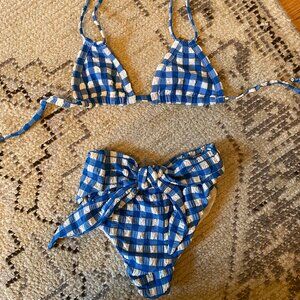FULL SET - BOTH M - Montce Swim Blue Gingham Bikini Set Paula Tie Bottom Euro Bows Top M