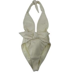 Montce Nylon Blend Tropez Tie-Up Halter Neck One-Piece Cream Rib Women's Size S