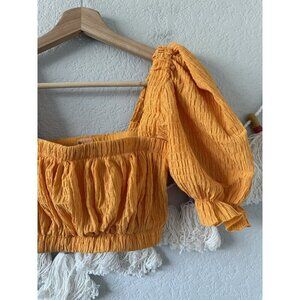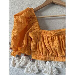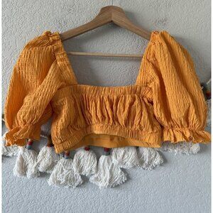 Montce Swim Mari Scrunch Marcela Bikini Top Orange Beach Boho Coquette XS $162