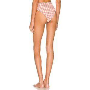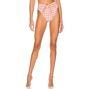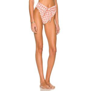 Montce Swim Paula Tie Up Bikini Bottom in Shrimp Gingham Pink S NWT $122