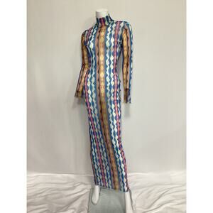 Montce Swim 'Solidad' Blue Maxi Turtleneck Dress Size L