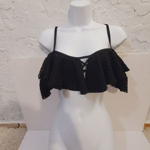 Montce solid black ruffle Bikini top only size XS