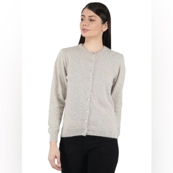 warmth and elegance of this stellar light khaki cardigan from the latest collection of Monte Carlo. Beautifully crafted in premium Angoora wool for a gentle, soft sheen and luxurious touch complemented by unmatched comfort, it's pleasing color-block pattern makes it a versatile fashion piece. Pair it with denims for a stunning look.