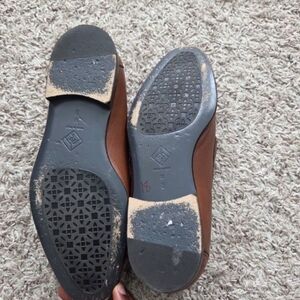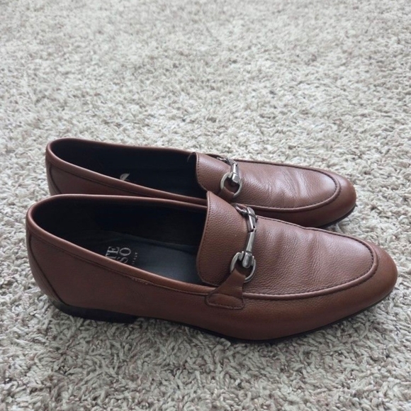 Sleek chestnut leather slip-ons with a stylish metal accent. Ideal for casual and formal wear.
