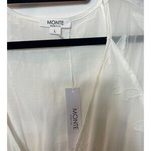 Monte Serafina White Butterfly Midi Sheer Dress Size Large NWT