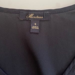 Monteau | Black V-Neck Blouse with Lace Sleeves Elegant Long Sleeve Top, Size S