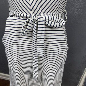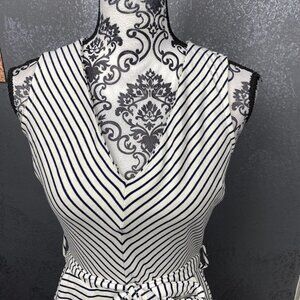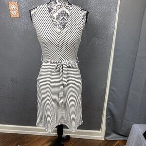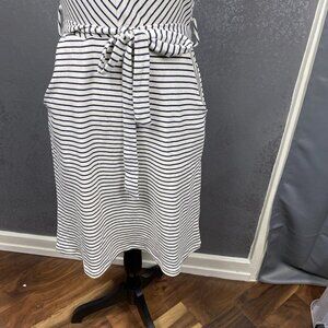 Monteau Black White Striped Sleeveless Tie Waist V-Neck Dress XS NWT
