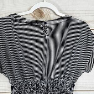 Monteau Black & White Striped Smocked Back Capped Sleeve Blouse Size XL