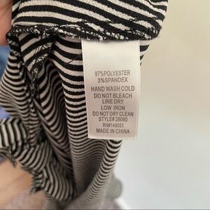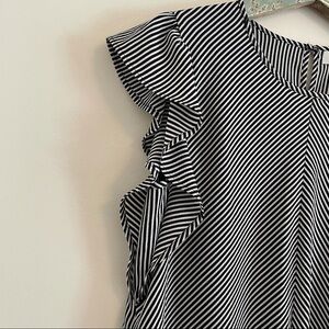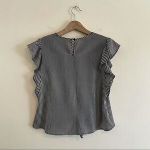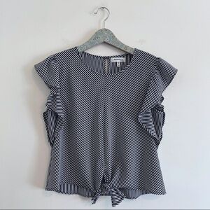 Features: black and white stripe, tie front, slightly cropped top, Ruffle flutter sleeves.