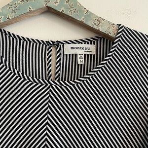 Monteau Black and White Stipe Flutter Sleeve Top