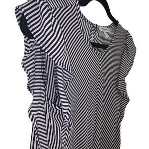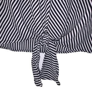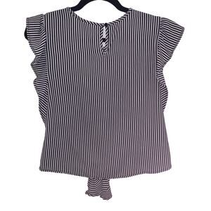 Monteau Black and White Stripped Ruffle Short Sleeve Tie Front Top Size M