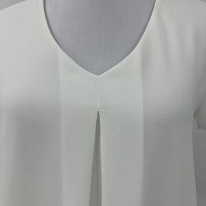 Monteau Blouse Women XS Extra Small White Split Front Chiffon Layer Short Sleeve