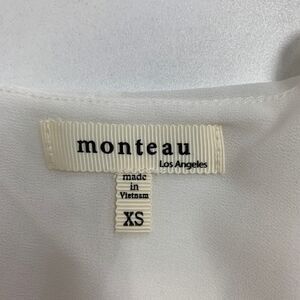 MONTEAU BLOUSE WOMEN XS EXTRA SMALL WHITE SPLIT FRONT CHIFFON LAYER SHORT SLEEVE
