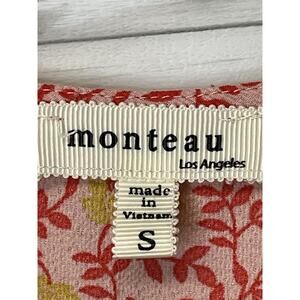 Monteau Blouse Womens Small Pink Red Yellow Floral Short Sleeve Wrap Peplum Top